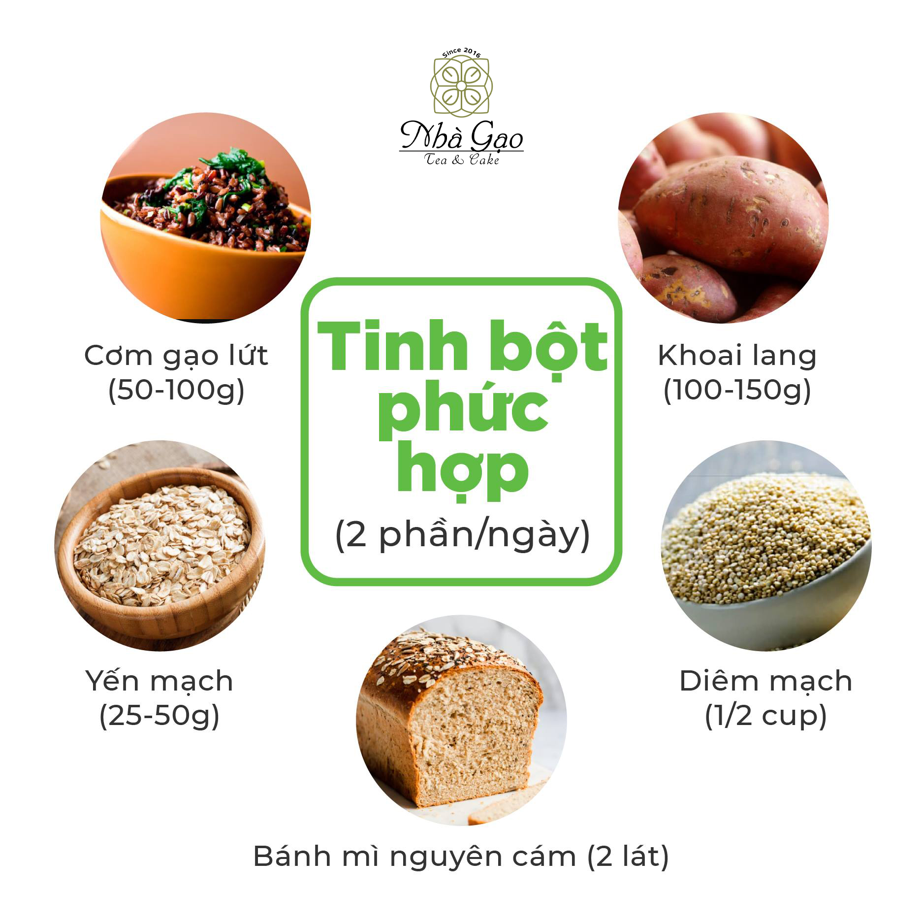 - Các loại thực phẩm chứa đường bột : Khoai lang, yến mạch, hạt diên mạch, gạo lứt, các loại rau củ quả...