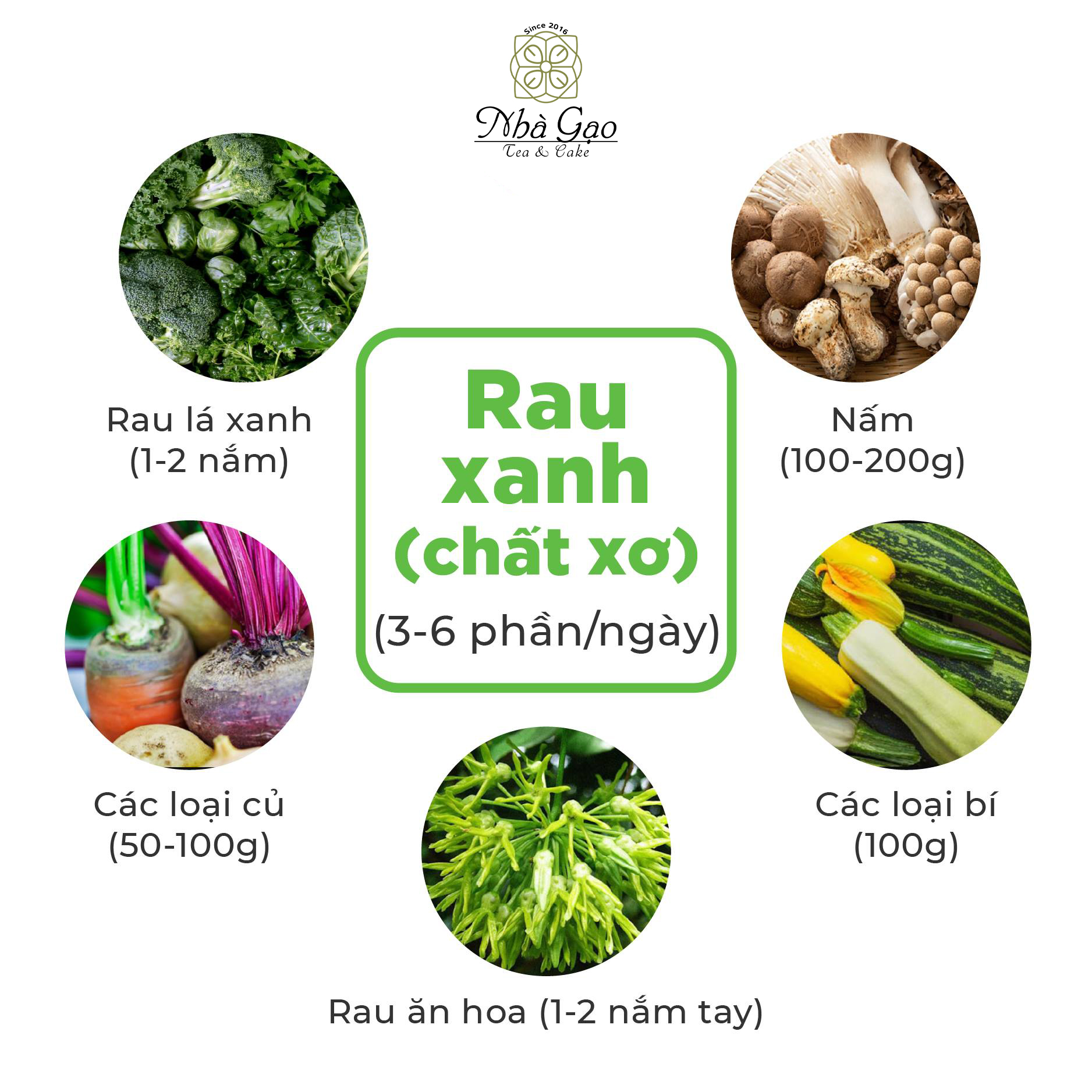 - Rau lá xanh : Rau cải, rau là nách, rau chân vịt,....