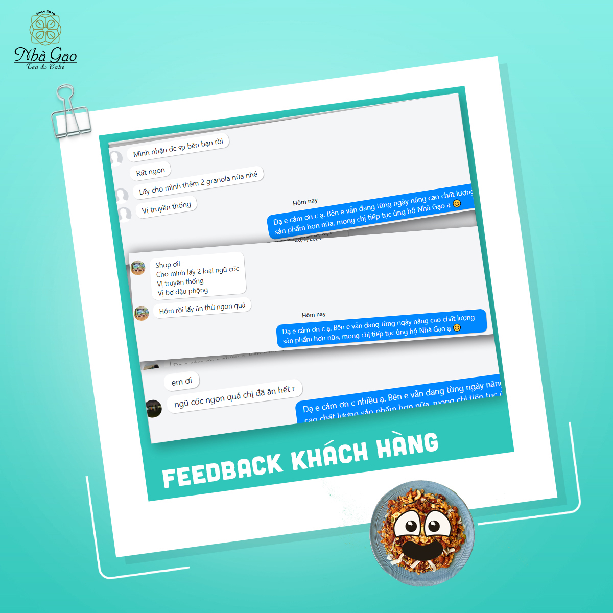 GRANOLA nhà Gạo luôn chiều lòng khách bởi tỉ lệ hạt nhiều hơn yến mạch giúp bạn ăn ngon mà không bị ngán. Yến mạch nguyên hạt bổ sung vitamin, canxi, sắt, tốt cho tim mạch, kiểm soát huyết áp, cholesterol cao...