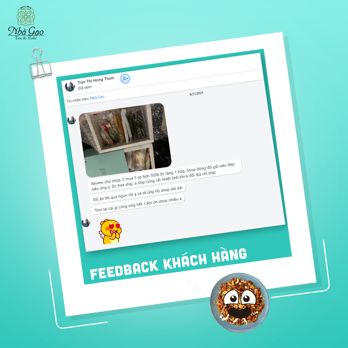 Đặc biệt KHÔNG SỬ DỤNG ĐƯỜNG, KHÔNG DÙNG BỘT MỲ, KHÔNG CHẤT BẢO QUẢN, KHÔNG CHIÊN QUA DẦU MỠ nên rất phù hợp cho chị em nào đang theo chế độ ăn eatclean và tập luyện ạ.
